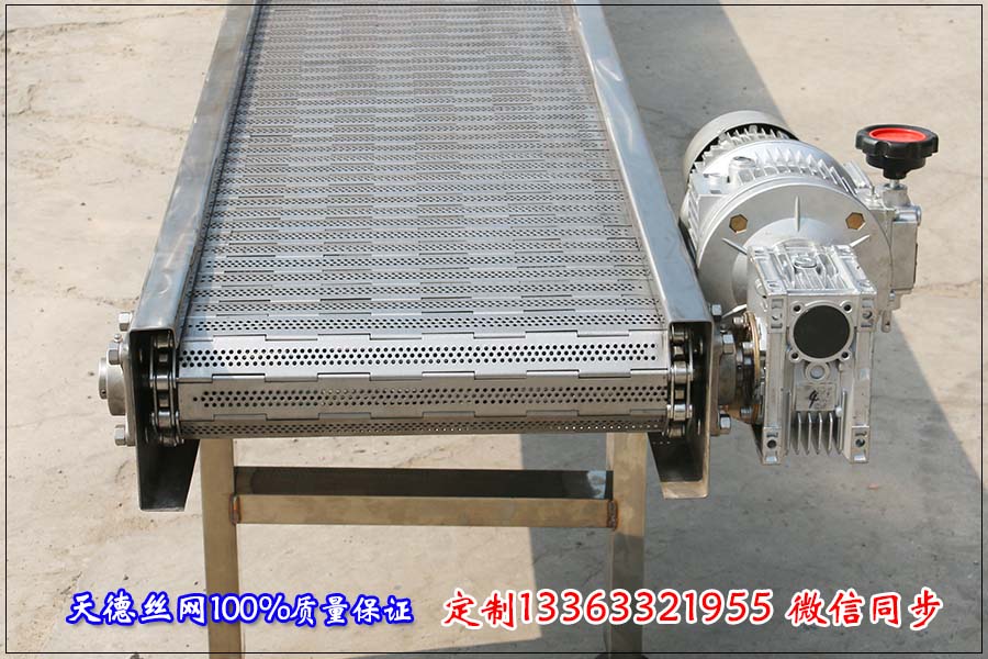 河北天德絲網制品有限公司生產音響家電鏈板輸送機、不銹鋼輸送機、扣板式輸送機、板式輸送機:13363321955