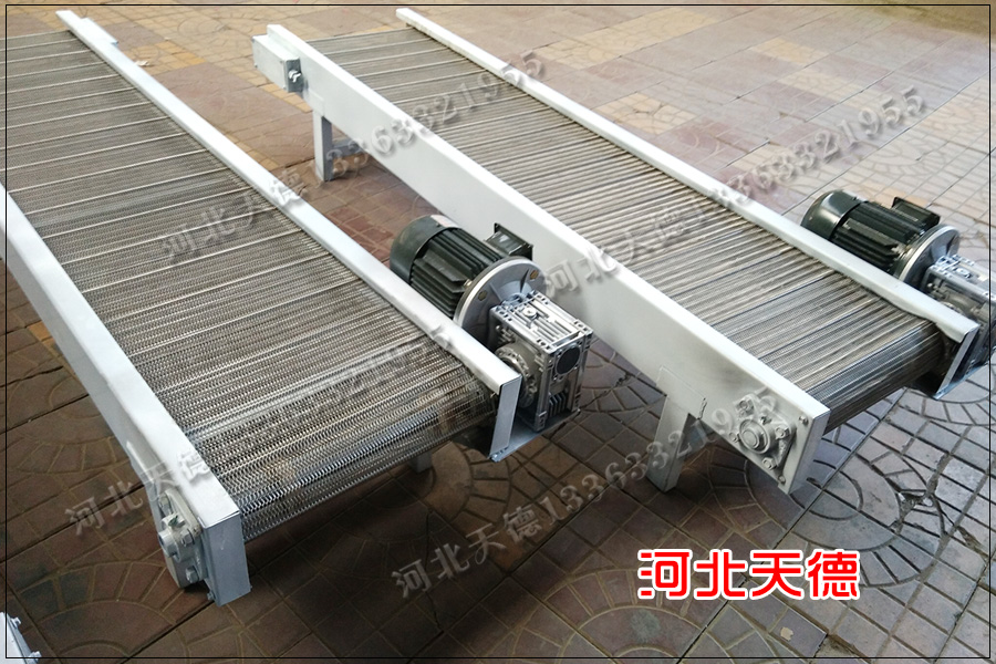 河北天德絲網制品有限公司生產不銹鋼輸送機、網帶輸送機、輸送網帶、不銹鋼網帶、輸送鏈板、鏈條網帶、人字網帶等多種規格的輸送機以及輸送配件。