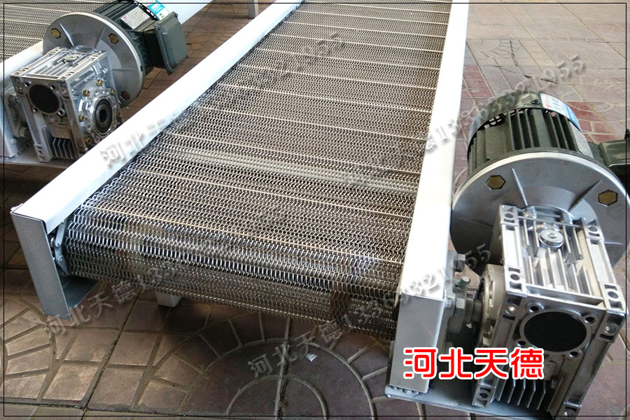 河北天德絲網制品有限公司生產不銹鋼輸送帶、鏈板輸送機、輸送鏈板、金屬輸送帶、轉彎輸送機、提升輸送機等輸送設備等。