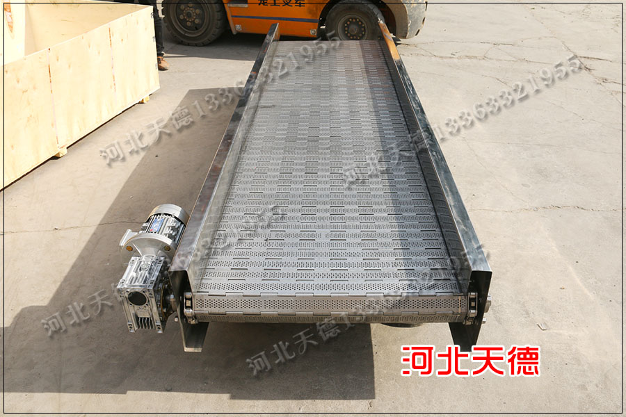 河北天德絲網制品有限公司生產鏈板輸送機、不銹鋼輸送機、輸送設備、輸送鏈板等等定制型機械以及配件。