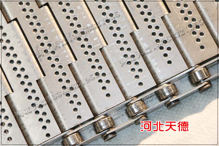 河北天德不銹鋼輸送帶廠家生產定制各種形式的鋼板輸送帶、擋邊輸送帶、輸送鏈板、不銹鋼鏈板、烘干機鏈板、清洗機打孔鏈板等等以及定制型的輸送機械。