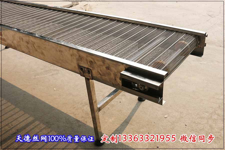網帶輸送機是皮帶輸送機的產品,完全客服了皮帶機污染的問題,網帶輸送機材質可以選擇完全可以符合衛生標準,成功的客服了不銹鋼網帶撕裂腐蝕的缺點。 網帶輸送機為大家提供了一種快捷、簡單的輸送方式。網帶輸送機傳動方式系選用鏈輪驅動,因此不銹鋼網帶輸送機不易蛇行、跑偏,由于不銹鋼網帶非常厚實可以經得起切割、重物碰撞,及耐油、耐水等特性的,網帶輸送機防止了各行業在使用的時候減少維修保養的困擾,在更換不銹鋼網帶上更減少費用。網帶輸送機不會吸附任何雜質在不銹鋼輸送帶表面。網帶輸送機穩定性和耐化學性很強,在各行業都很實用。