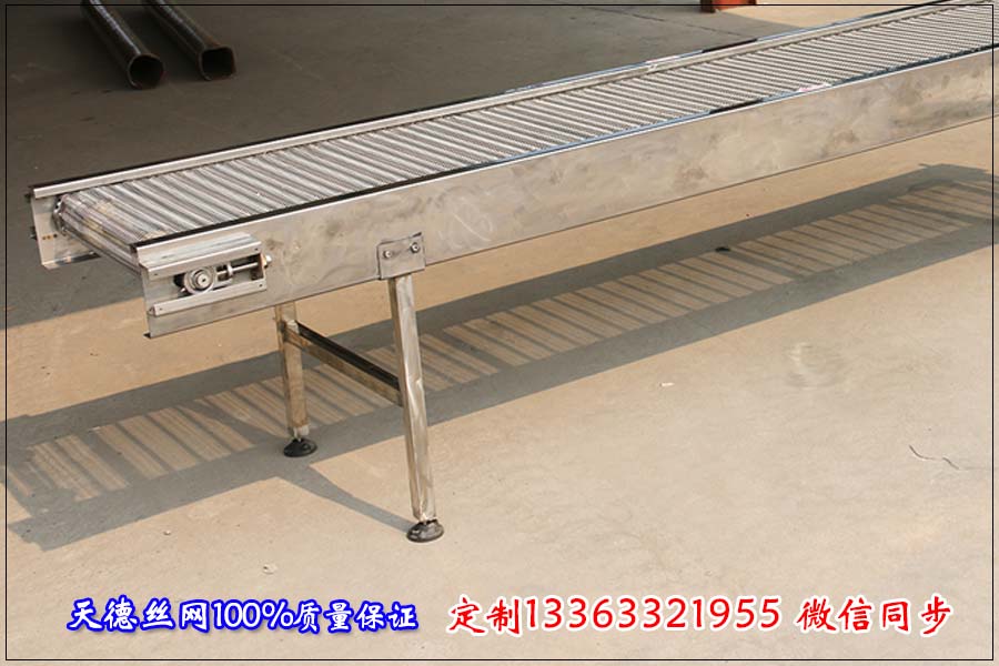 一臺(tái)實(shí)用的網(wǎng)帶輸送機(jī)它長度、寬度等參數(shù)都是有一定比例關(guān)系的一般來講網(wǎng)帶輸送機(jī)的寬度不能超過2米,長度不能超越30米。如果輸送物料體積大、密度大那就要在網(wǎng)帶下方加裝軌道支撐;如果輸送線比較長的話把網(wǎng)帶輸送機(jī)分節(jié)來制作而不能做成一條輸送線,因?yàn)榫W(wǎng)帶輸送機(jī)超過30米的話輸送網(wǎng)帶在牽引力下延伸率太大,造成輸送機(jī)脫軌或者跑偏。