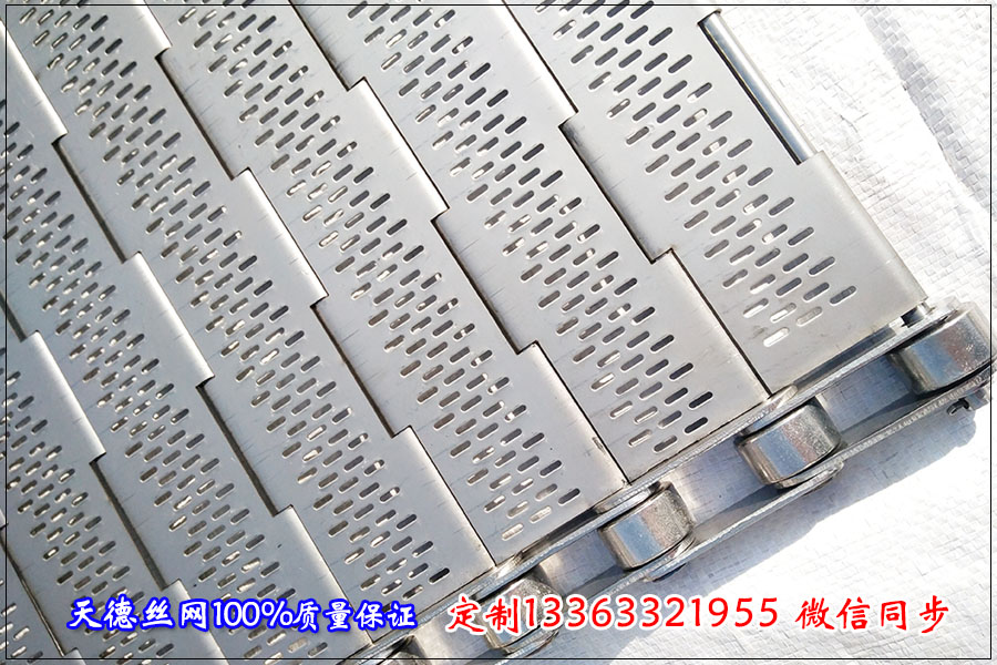 河北天德不銹鋼輸送帶生產各種規格的鏈板、打孔鏈板、金屬輸送鏈板、輸送網帶、長城輸送帶、乙字網帶、人字網帶等等以及配件。