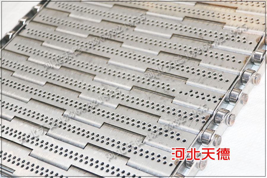 鏈板采用厚度1.5毫米鋼板折彎而成,鏈條節距為50.8毫米,鏈條的節距與鏈板的節距相同,用10毫米的鋼桿鏈接使用。