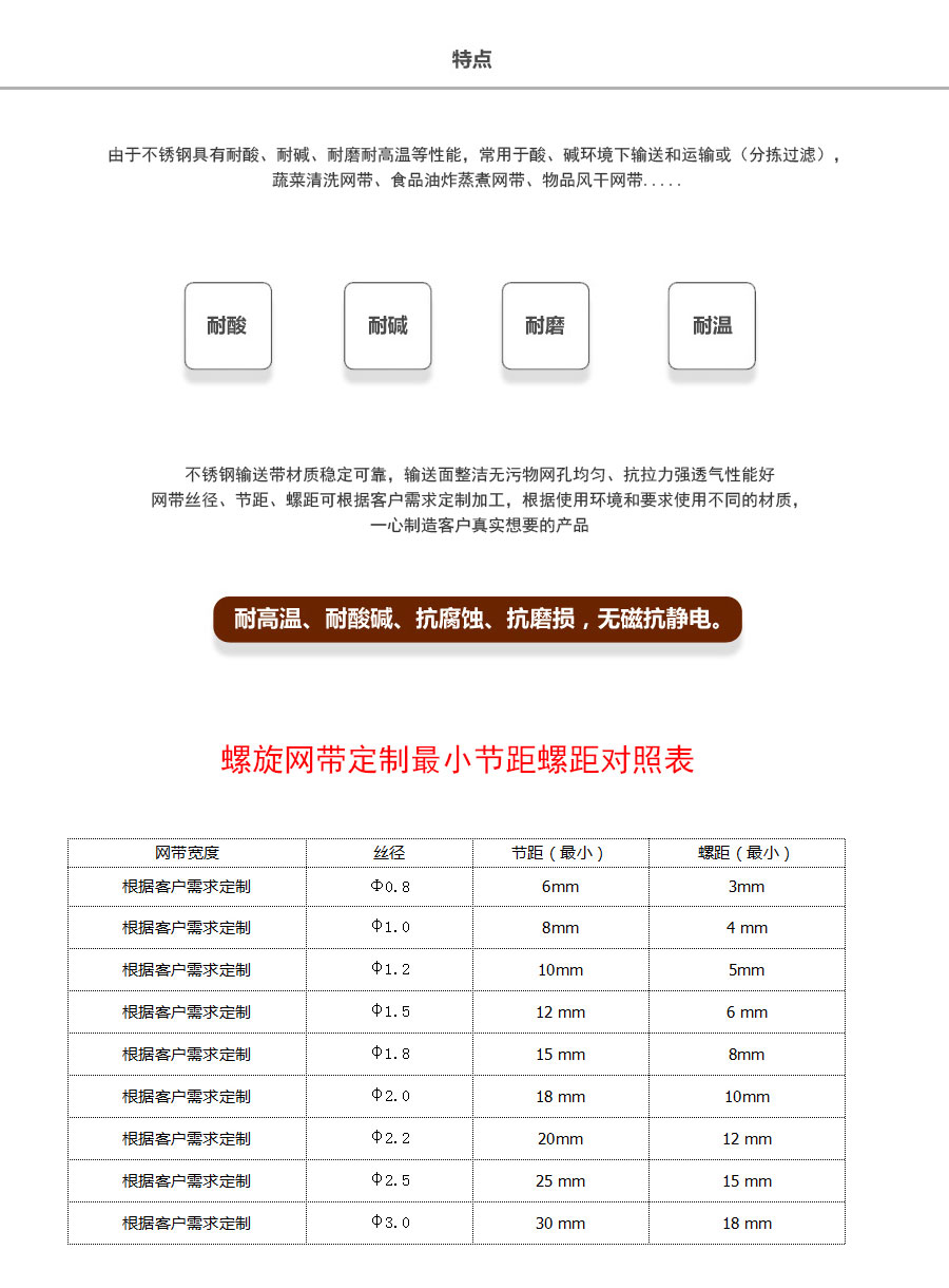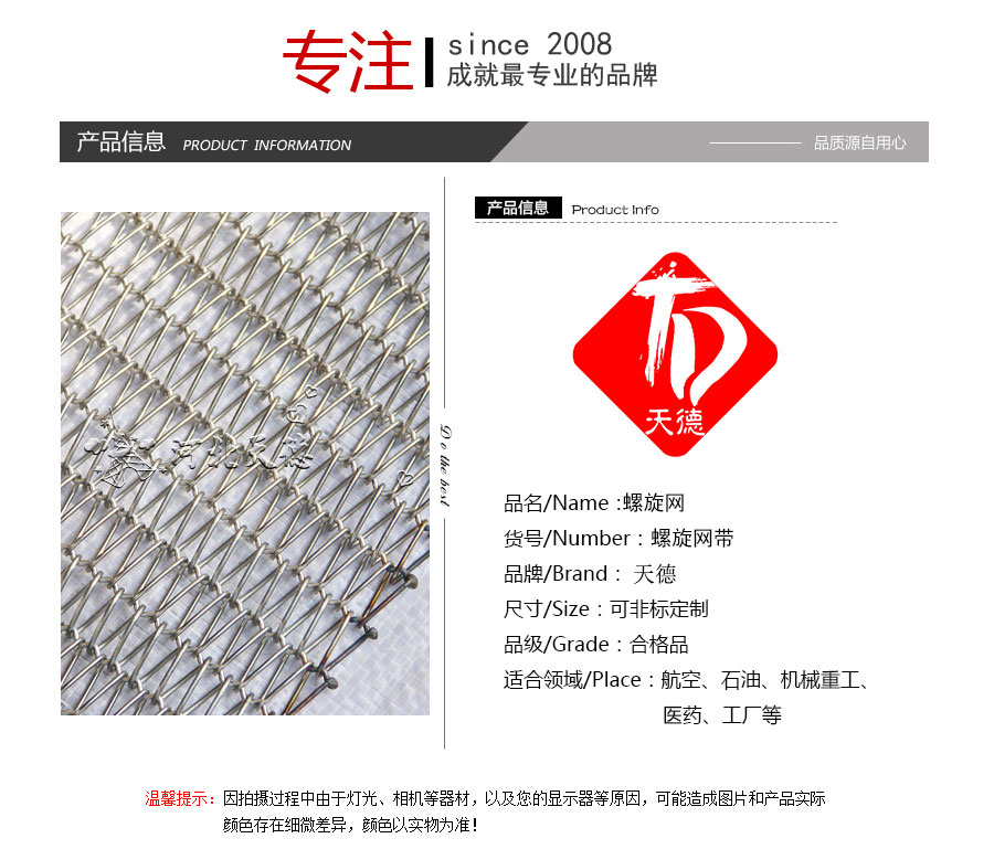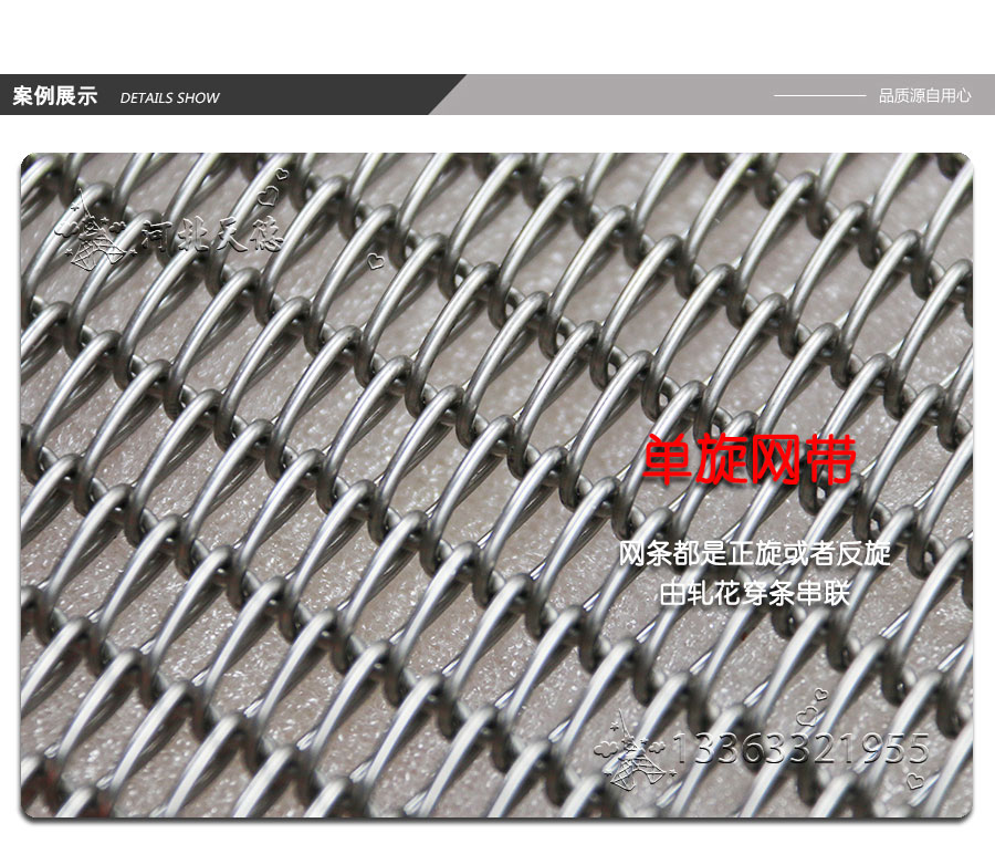雙旋不銹鋼網(wǎng)帶屬于非標(biāo)準(zhǔn)件,我們將根據(jù)你提供的規(guī)格長寬,材質(zhì),不銹鋼絲線徑,編制結(jié)構(gòu)尺寸,支軸直徑,支軸間距,鏈條型號(hào)等數(shù)據(jù)制作.