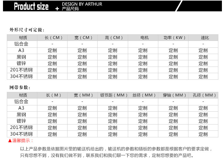 網帶輸送機結構形式: 水平直線輸送、提升爬坡輸送、轉彎輸送等多種形式,輸送帶上還可增設提升擋板、側擋板等附件,能滿足各種工藝要求。輸送機材質:有A3低碳鋼、201不銹鋼、304不銹鋼等。