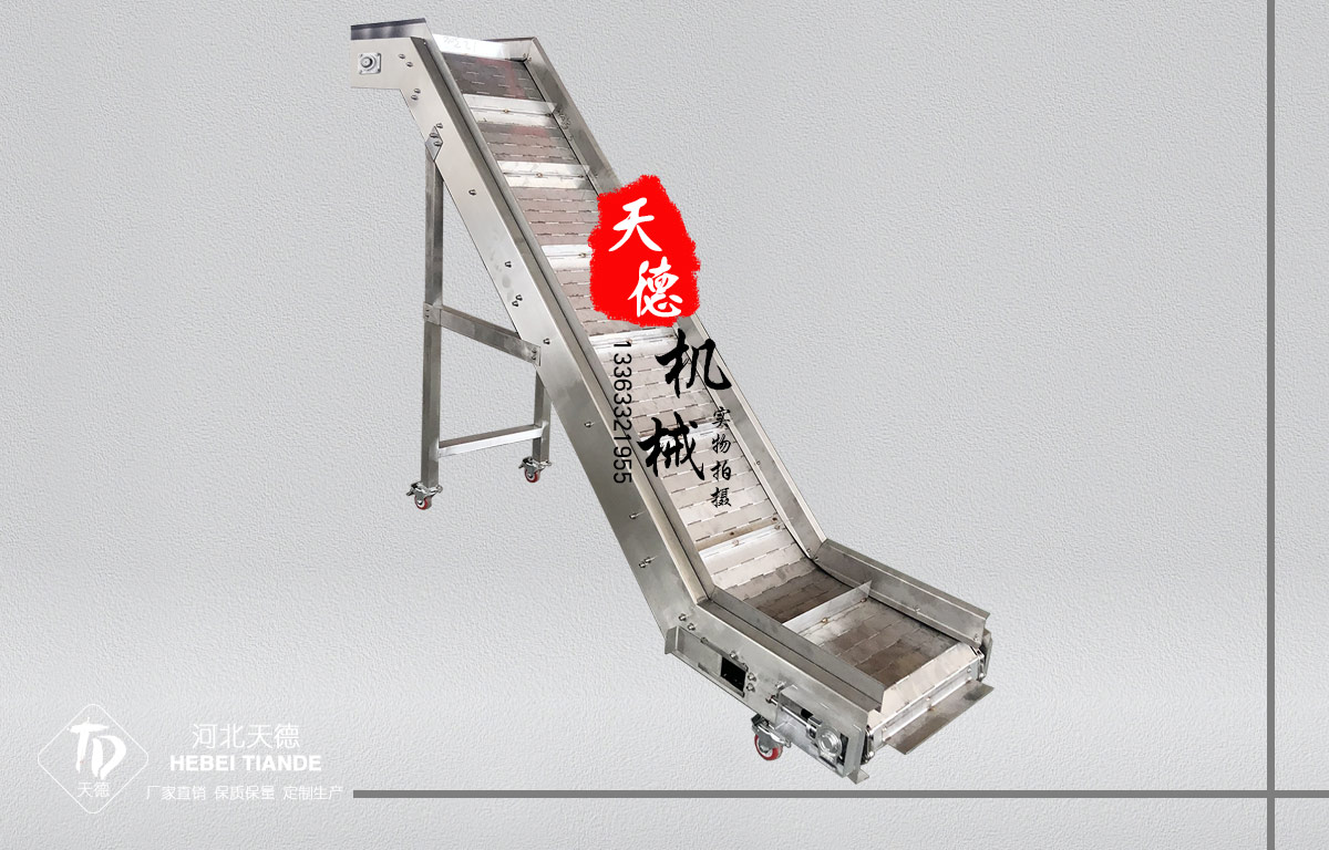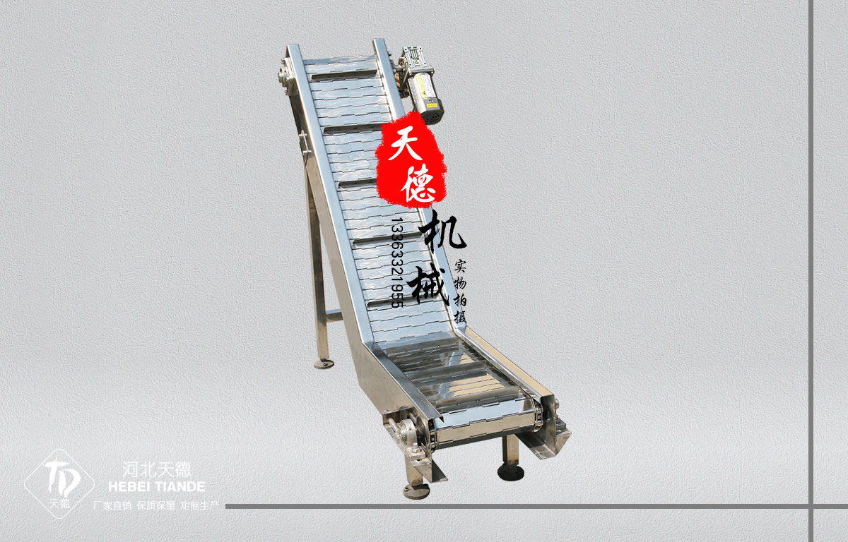 ◆不銹鋼304鏈板輸送機一般都可以直接用水沖洗或直接浸泡在水中,設備清潔方便,能滿足食品、飲料行業對衛生的要求。