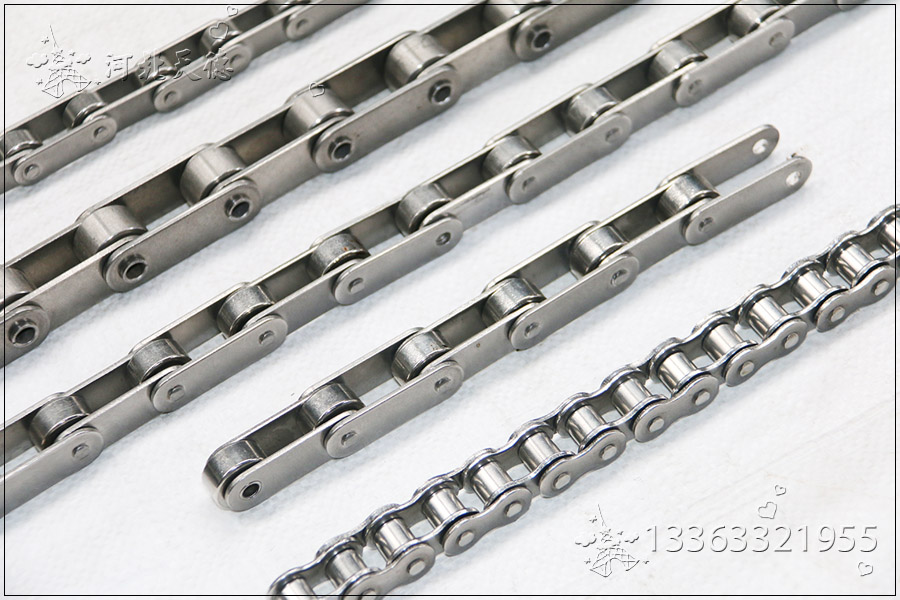 二、滾珠鏈條:該鏈條是在銷軸上依次串接外鏈板、內(nèi)鏈扳、軸套、內(nèi)鏈板、外鏈板及在軸套上套接滾珠組成單排鏈條。并且它特別適用在農(nóng)業(yè)及工業(yè)傳動等機械設(shè)備上的鏈傳動裝置上