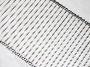 軋扁絲雙旋不銹鋼網帶:是先將絲壓扁在進行編織的網帶,是由左螺旋或者右螺旋盤條與一根穿條鏈接焊邊而成的,